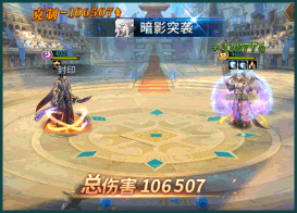 暗影突袭霍德尔出现在敌方生命最低目标身后进行一次猎杀,挥舞毒刃对目标造成3段攻击,共造成共374%点物理伤害,每段攻击50%概率对目标附加1层【流血】效果,最后一击50%概率对目标额外附加【眩晕】状态,均持续2回合;霍德尔在潜行状态下释放【暗影突袭】时,会变为释放【奥义!暗陨杀】冷却4回合